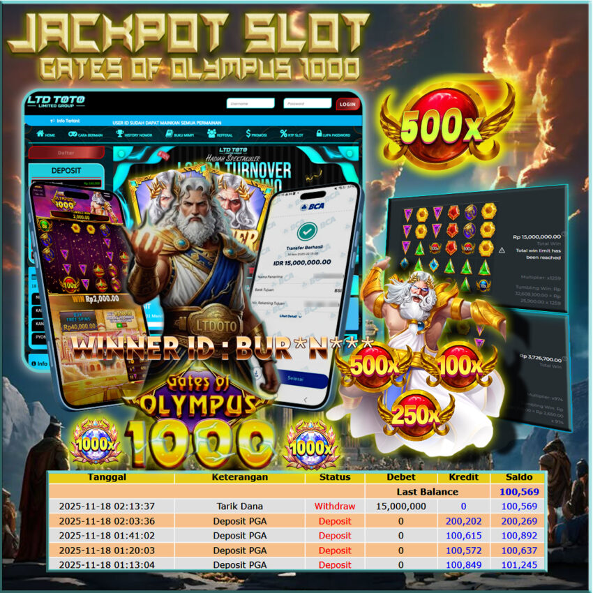 LTDTOTO JACKPOT GATES OF OLYMPUS 1000 RP 15.000.000 SELASA 18 NOVEMBER 2025