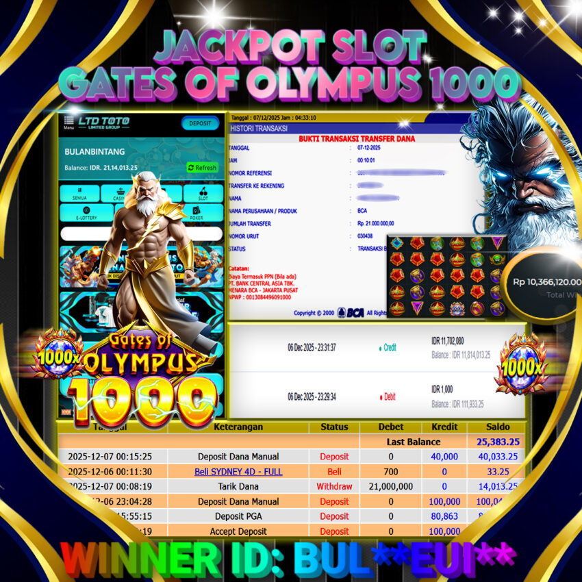 LTDTOTO JACKPOT GATES OF OLYMPUS 1000 RP 21.000.000 MINGGU 07 DESEMBER 2025