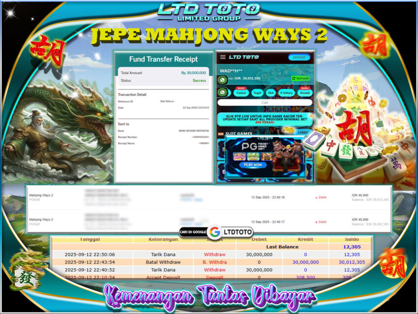 LTDTOTO JACKPOT MAHJONG WAYS 2 RP 30.000.000 SABTU 13 SEPTEMBER 2025