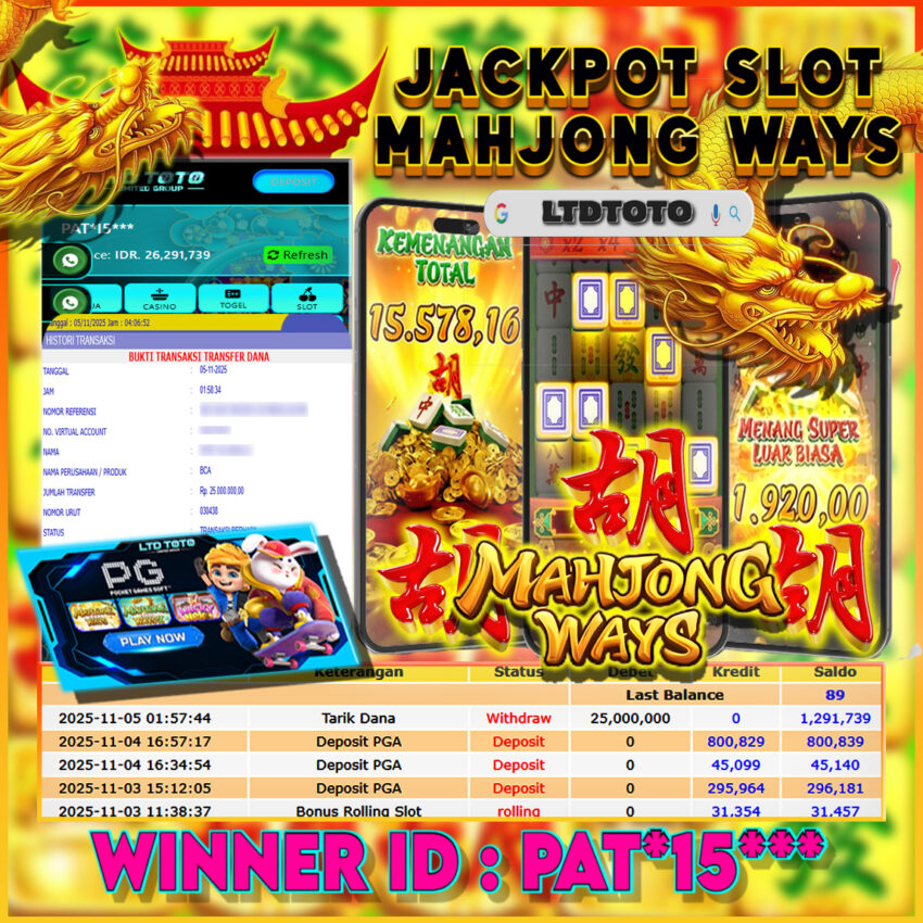 LTDTOTO JACKPOT MAHJONG WAYS RP 25.000.000 RABU 05 NOVEMBER 2025