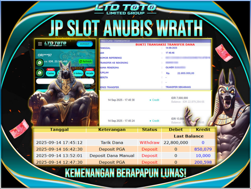 LTDTOTO JACKPOT ANUBIS WRATH RP 22.800.000 MINGGU 14 SEPTEMBER 2025