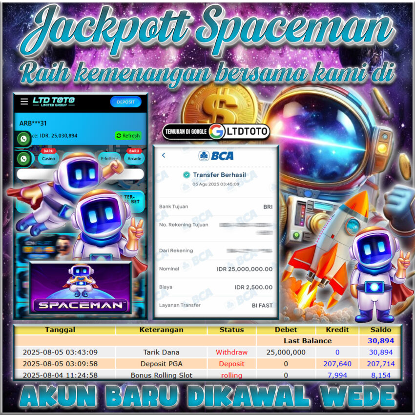 LTDTOTO JACKPOT SPACEMAN RP 25.000.000 DI BAYAR LUNAS!