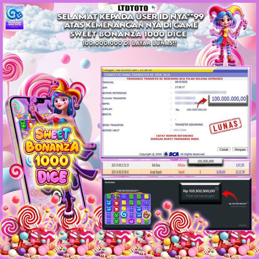 LTDTOTO JACKPOT SWEET BONANZA 1000 DICE POOLS RP 100.000.000 DI BAYAR LUNAS!