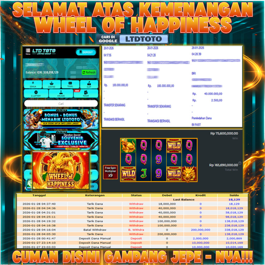 LTDTOTO JACKPOT WHEEL OF HAPPINESS RP 338.000.000 RABU 28 JANUARI 2026
