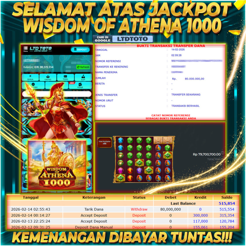LTDTOTO JACKPOT WISDOM OF ATHENA 1000 RP 80.000.000 SABTU 14 FEBRUARY 2026